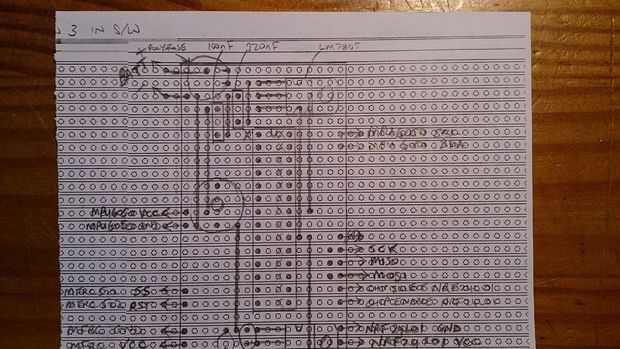 Una vez que se terminó el esquema el circuito fue diseñado en tira de a bordo. Usted podría, por supuesto, hacer tu propio PCB en esta etapa, pero prefieren la simplicidad de la Junta de tira para mis proyectos y tienen poco éxito en la fabricación de PCB.