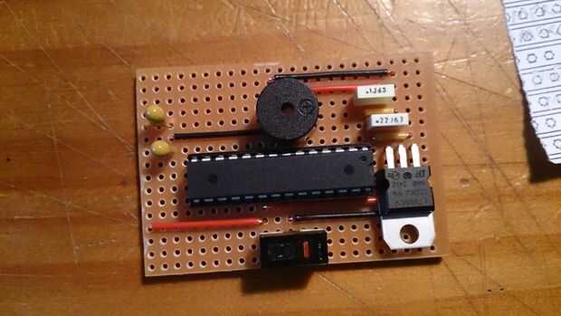 El zumbador es un timbre de 5V sencilla que funciona directamente desde el pin ATmega328p 5 (pin digital 3).