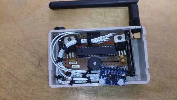 Utilicé el tamaño 24 AWG de alambre para conectar los componentes. Un recinto más grande habría sido útil en este punto. He tratado de garantizar que el dispositivo todavía se pudo quitar de la caja sin necesidad de desconectar ningún cable. La única excepción a esto serían los cables del conector DC. Estos debían ser lo suficientemente largos para permitir que los circuitos internos ser 'revelado' desde dentro del recinto para permitir el acceso a la parte inferior de la tira-Junta y lector de RFID.