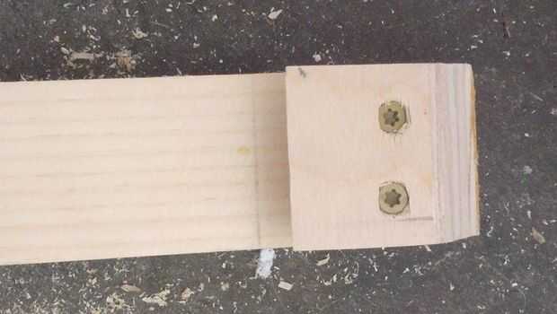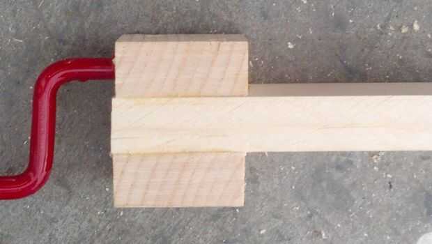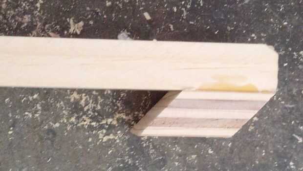 Una vez que sus suspensiones cortados a la medida, cortar listones de la misma anchura de una de sus tiras Cala sobra que arrancó antes. Pegamento y fije la abrazadera, asegurándose de que la dirección de la cuña es hacia abajo y lejos de la parte superior de la percha. Una vez que el pegamento esté seco, taladre agujeros piloto y los avellane, y luego en un par de tornillos para mayor resistencia.