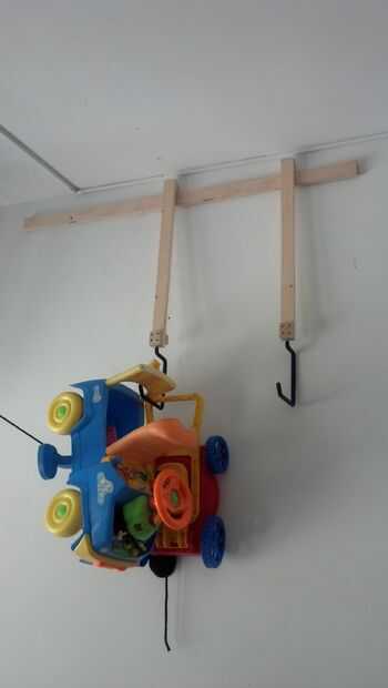 techo herramienta almacenamiento, utilizando paneles con bisagras y herramientas polea a seguro fuera del camino en el techo.Paso 1: Paso 1Utiliza 1/2" capas panel al formulario tormento, abatible a techo conjunto fuera de la pared sobre 4inches, est