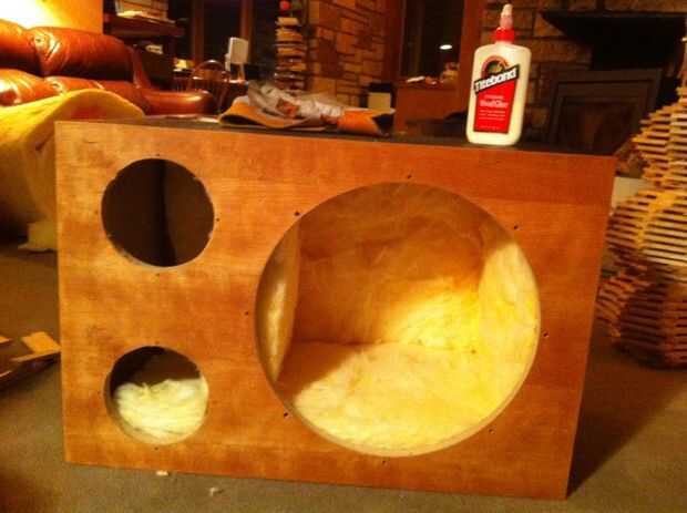 Wayne, pegué R11 aislamiento de fibra de vidrio para la parte superior, parte posterior, soportes transversales y un lado completo. (Esto es para evitar resonancias no deseadas de la onda estacionaria dentro de las cajas).