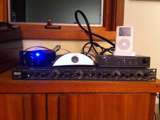 El pedazo de 800Hz y hasta va al Sonic impacto T-6 vatios por canal amplificador. T-Amp va a la Altecs (a través de un L-pad que rellena cada Altec abajo por lo que es el mismo volumen que su superagudo) y los supertweeters (cada uno mediante un condensador, que evita que las frecuencias sub-8K golpeando).