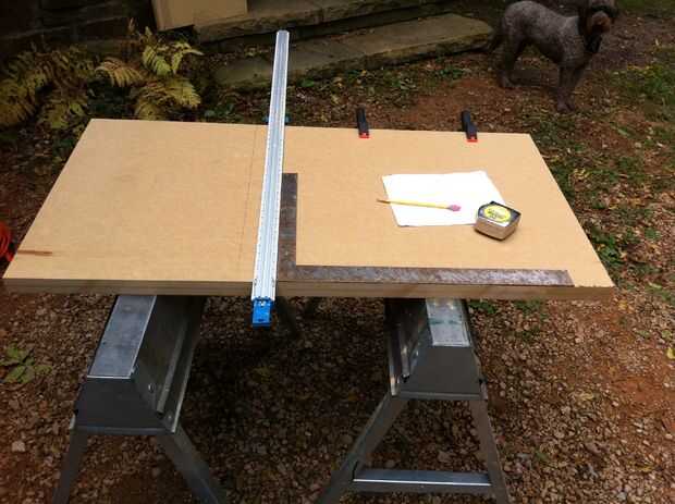 No tengo una sierra de mesa, así que escribió un plan de corte y utilizar una sierra circular con una hoja de carburo fresco, una cinta métrica, una gran plaza de L y una de esas bonitas pinza guías rectas de Rockler. Vieron mis paneles realmente resultados más cuadrado que el último par de veces que he cortado grandes paneles sobre una mesa.