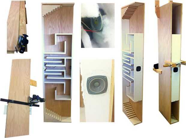 La imagen muestra mi corte crudo. Los deflectores con el altavoz prueba adjuntadas. Acercamientos del relleno detrás del altavoz. Temporalmente Coloque el panel lateral para pruebas!