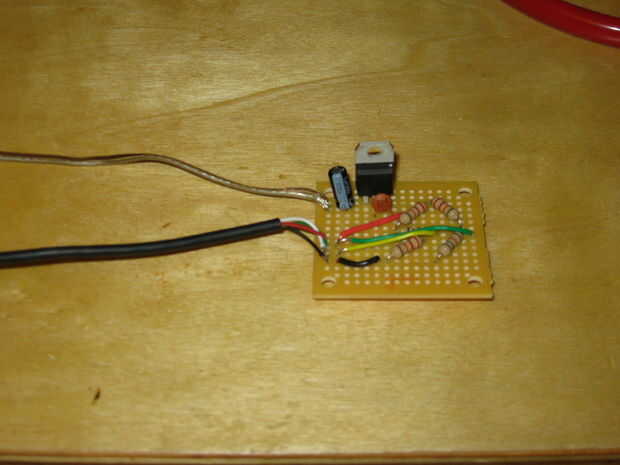 Después de poner los componentes en el tablero me había soldado todo abajo y corrió los cables de la parte superior a donde quería el cable USB para conectar. Puesto que los alambres de los cables USB son tan delgados solía una saludable porción de pegamento caliente seguro entonces a la Junta para que no mueva y romper. Hice una prueba rápida para asegurar que todo funcionaba todavía como debería el cargador está completo.