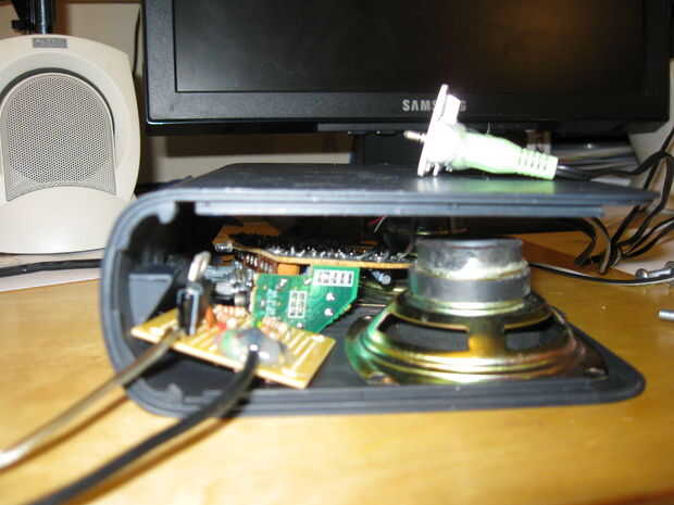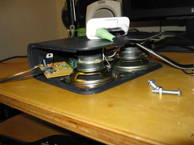 Los altavoces van a quedar en la parte posterior de la unidad hacia abajo. Cada orador será ángulo al lado de la caja. El amplificador del altavoz y el circuito de carga será por adelantado. El muelle de iPod irá justo encima de los altavoces y habrá suficiente espacio para el ajuste superior del jack de auriculares. Entonces es hora de empezar a hacer agujeros en el caso.
