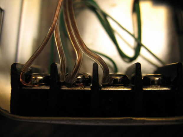 Los cables se conectan al bloque de terminales. He utilizado este bloque asi pude hacer cambios sin tener que desoldar las conexiones.