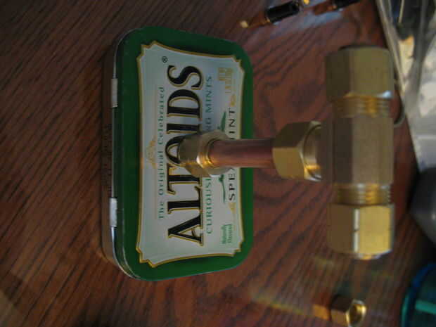 Utilizando todo el pequeño que ha perforado en la parte inferior de la base de la lata y atornille la tuerca.