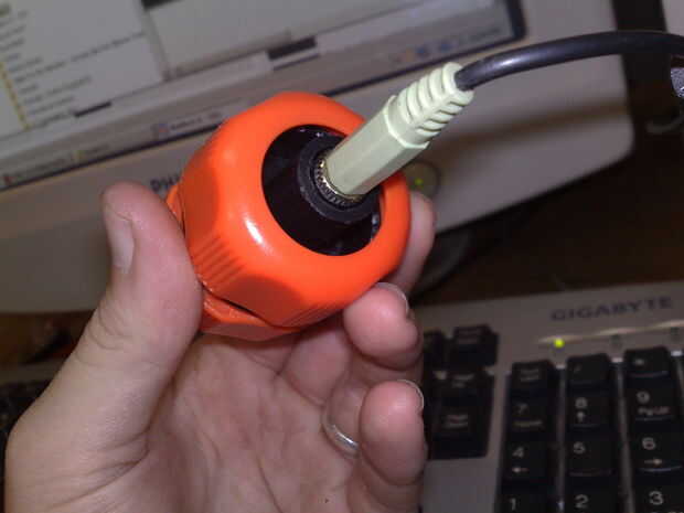 hecha de otra manera sin usar altavoces de la computadora, esta configuración de batería simple se pueden emplear en numerosas situaciones donde poder no está disponible pero la música es una necesidad.  Un conector de auriculares estándar adapta a i