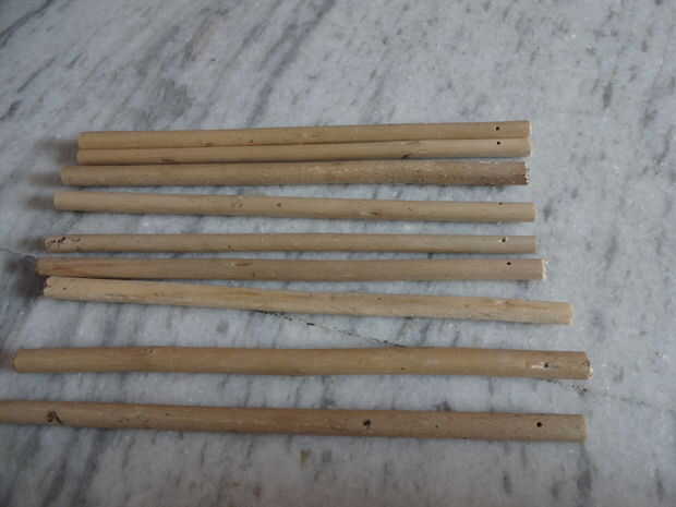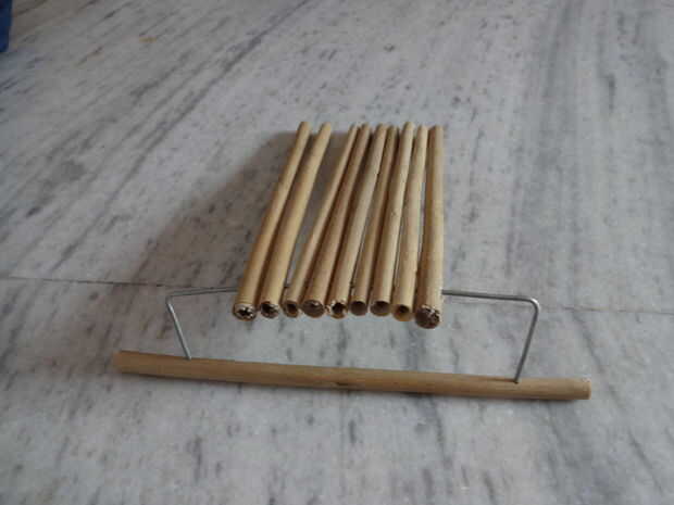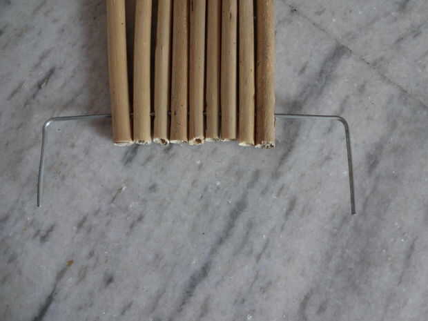 2. Pase el alambre por los agujeros. Asegúrese de que los palillos se mueven libremente.