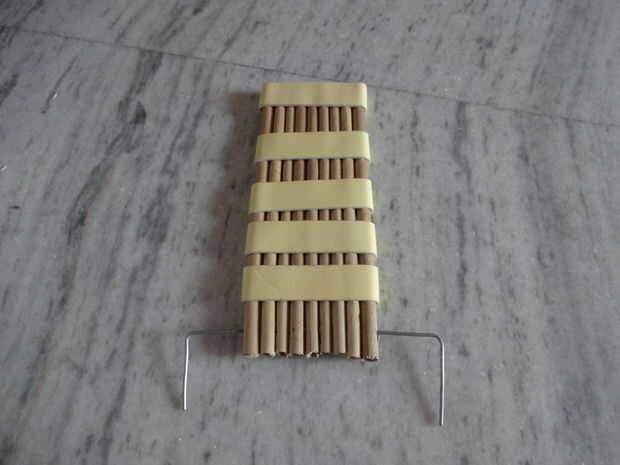 9. Pegue todos los 9 palos con cinta doble cara espuma por lo que se mueve como una unidad. Vamos a nombrar un "pedal".