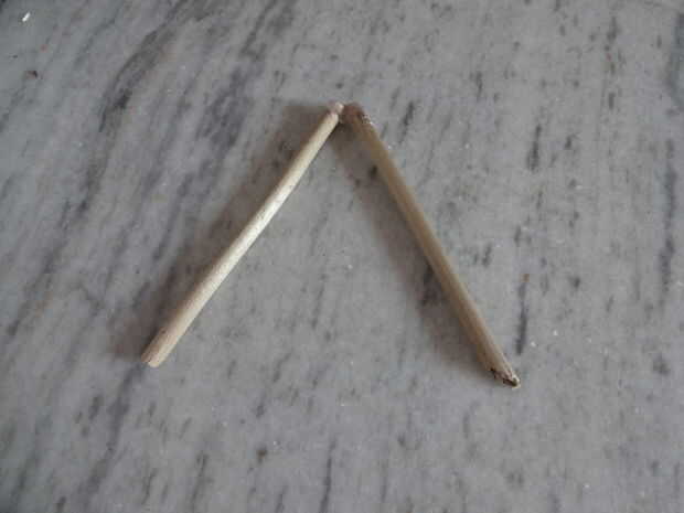 7. los otros dos palos y una 90 grados figura y pégala con pegamento caliente.