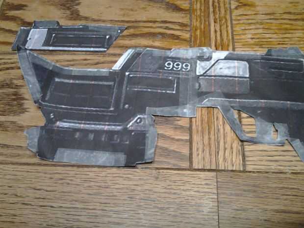 Finalmente la cinta para tablero de la espuma y cortar 2 sin y 1 con el gatillo en él.