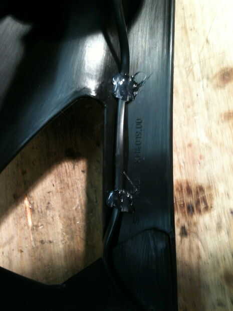 Con pegamento caliente, pegar los cables de los altavoces en el plástico