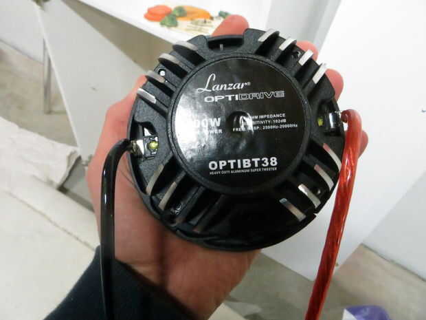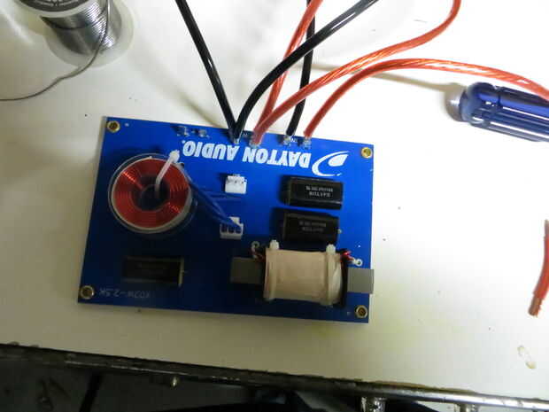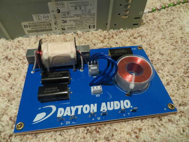Pozo usted escritorio probablemente se ve así... Mida la longitud de los cables que necesita y luego soldarlos a la unidad de cruce si es necesario. Algunos requieren que usted vende los cables a él en lugar de ser afianzado con abrazadera en. Suelde los cables ahora (no a la unidad de crossover) porque será difícil una vez montados en la caja.