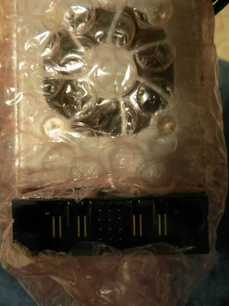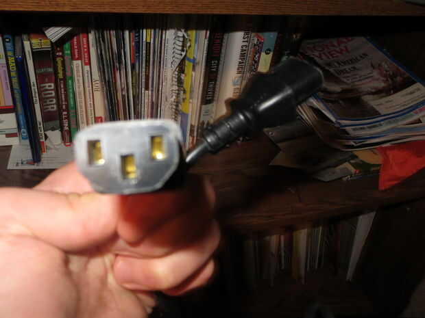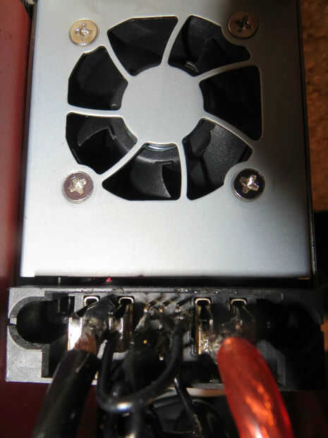 5. encontrar los pequeños pines en el adaptador de red. Oriente la fuente de alimentación con el ventilador en la parte superior los pines.