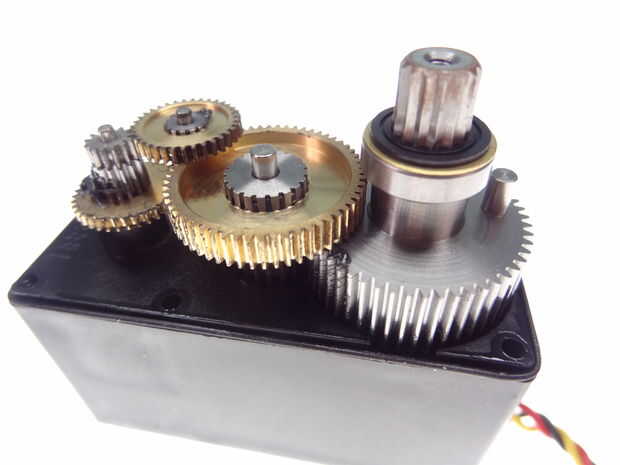 El potenciómetro interior fue quitado y reemplazado por otro que se une al eje de salida. Por lo tanto, puede moverse exactamente igual que un servo estándar.