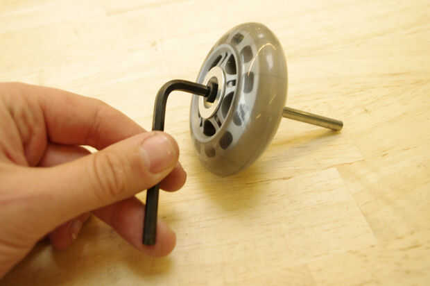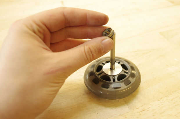 Instale el kit de adaptador de rueda de coche B en una de las ruedas de skate de baja fricción junto con 2,5" inox D-eje.