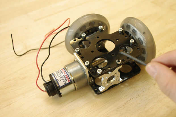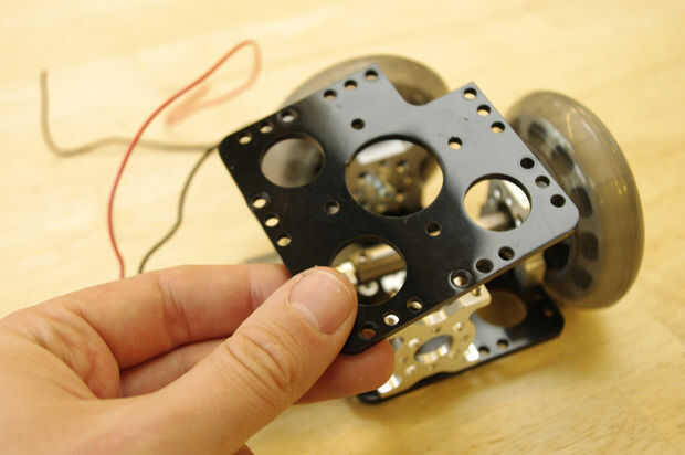 Conecte el motor e impulsión de la rueda a la placa de rueda de coche junto a una rueda intermedia y un Cuádruple eje montaje B.