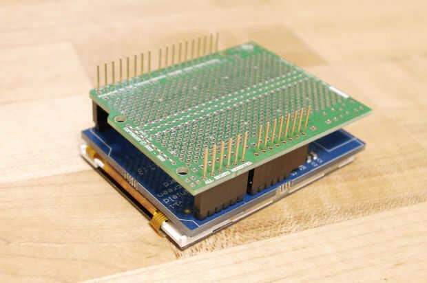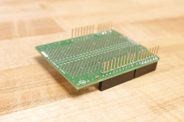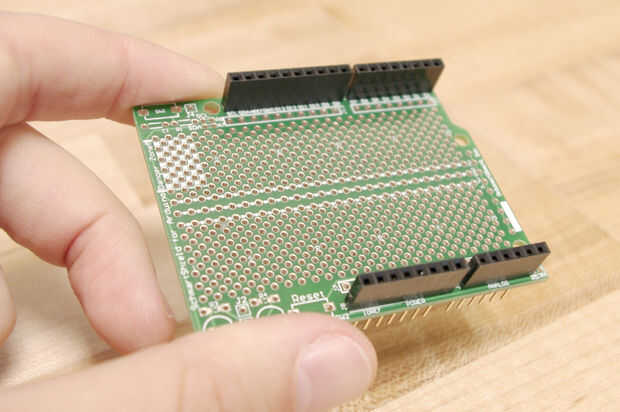 Vuelta el escudo proto e introducir los pasadores hembra encabezado hacia arriba en las ranuras apropiadas en el escudo.