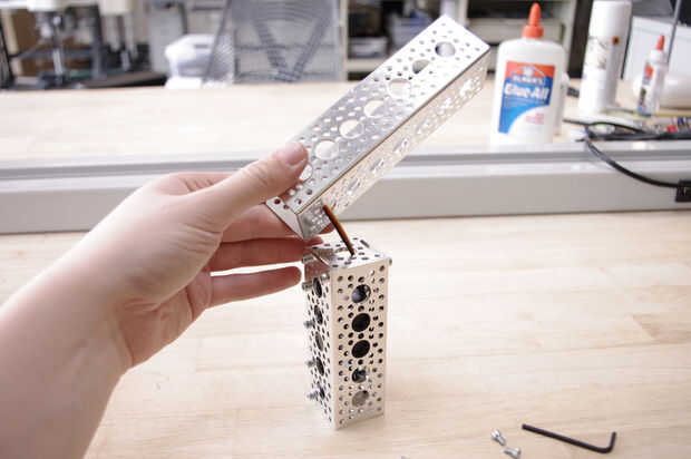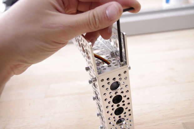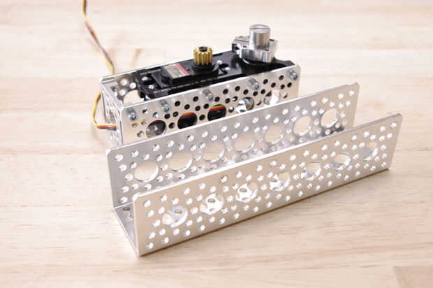 Fijar un canal de aluminio de 6" para el eje cuádruple 90 grados B-mount colocada en el canal de aluminio con el servo para forma una L.