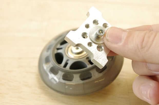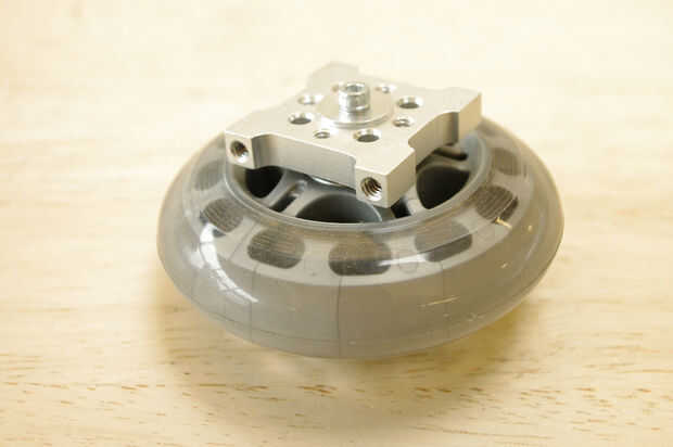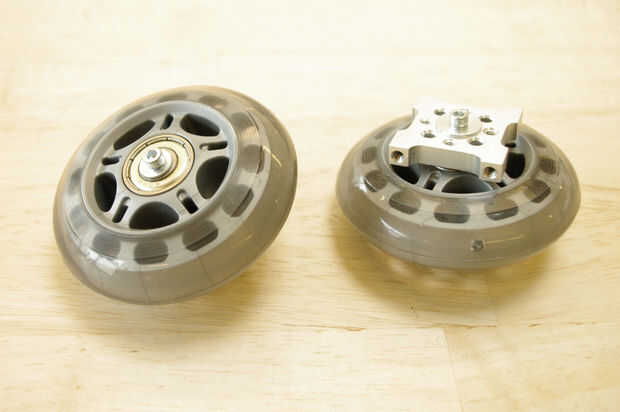 Introduzca los cojinetes sin fricción en una de las ruedas de skate de baja fricción.