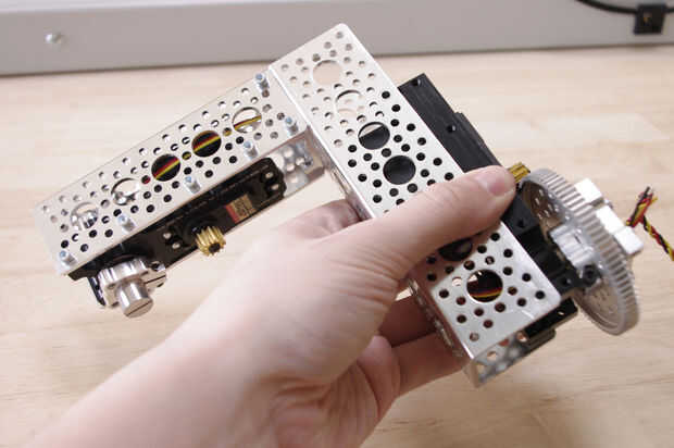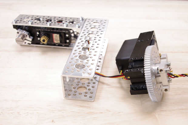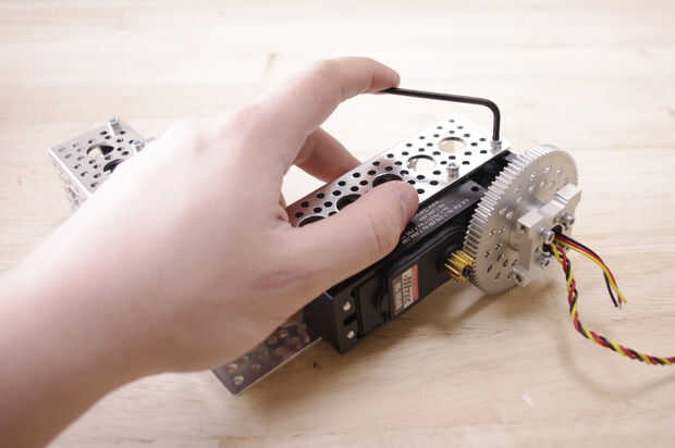 Fije el conjunto de servo HS-785HB hasta el final de la extrusión de aluminio de 6" frente a la conexión en el soporte en L.