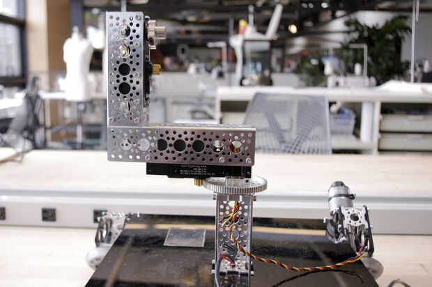Conecte un soporte de montaje D cuádruple eje 90 grados en el centro de la marcha en el conjunto de servo HS-785B cabrestante.