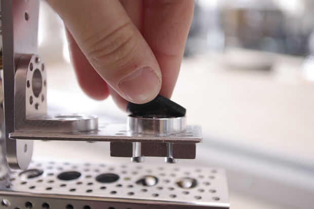 Utilice el archivo adjunto como una plantilla para cortar un anillo de goma de 1/8" para colocar encima el espaciador del eje.