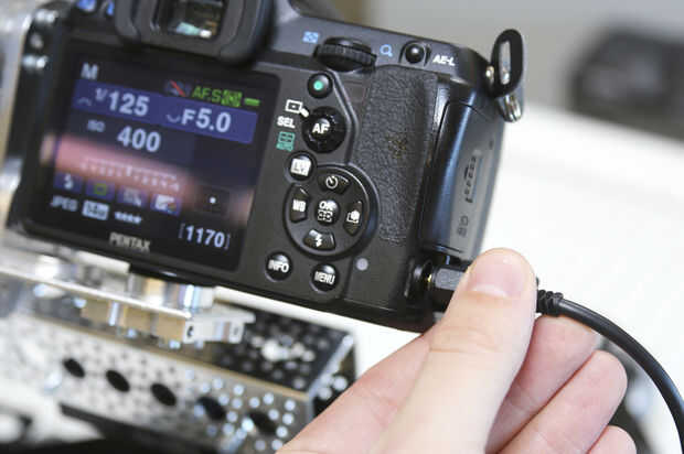 Inserte el enchufe del gatillo en la entrada de disparador de cámara.