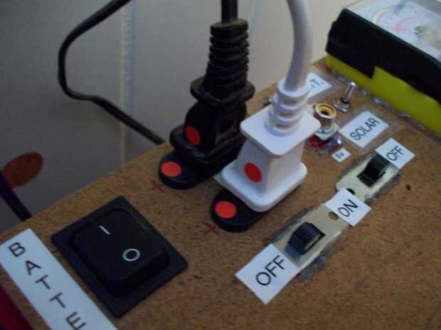Y finalmente en la última foto, ves 2 plug-ins de conexión (si se trata de 12v no 110) y van a 2 tiras de luz LED (ver mi instructables otros) y que es lo que uso a la luz de mi habitación por la noche. En la siguiente sep les mostraré algunas de las otras cargas que he creado para ejecutar fuera de este sistema.