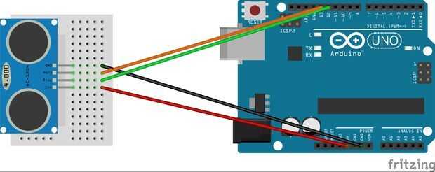 Preste atención que el sensor ping puede tener un esquema de los terminales diferentes (por ejemplo de 5 pins), pero debe tener un pin de voltaje, conector de tierra, trig patillas y un eco.