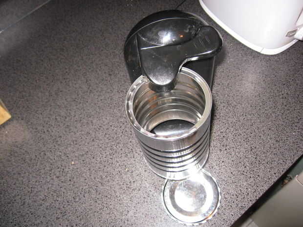 El primer paso en la preparación del café puede es deshacerse de la parte inferior de la lata y la brida en la parte superior. Esto se logra más fácilmente va a la cocina y hacer uso de un abrelatas eléctrico.