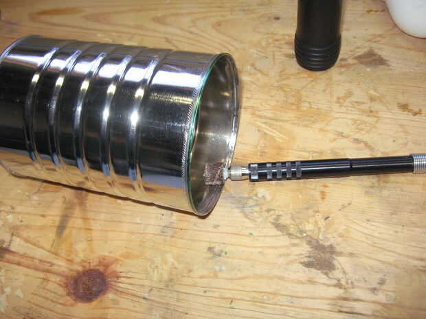 Una vez que esto se hace uso la Dremel para moler abajo los filos dejó en el poder. Cuando los bordes son de tierra suave uso un hack Sierra para cortar la lata por la mitad para producir dos túneles cortos. Utilizar la Dremel para una segunda ronda de molienda.