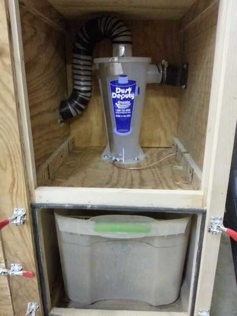 Nota: El compartimiento de la colección de polvo debe tener un sello hermético o el separador no funcionará correctamente. He creado un labio y había incluido algún sello de la tira de tiempo en el labio. También sellé el interior del compartimento de recogida de polvo con calafateo. También compré tensionadores de sujeción rápida para sujetar la puerta en el sello de la tira de tiempo.
