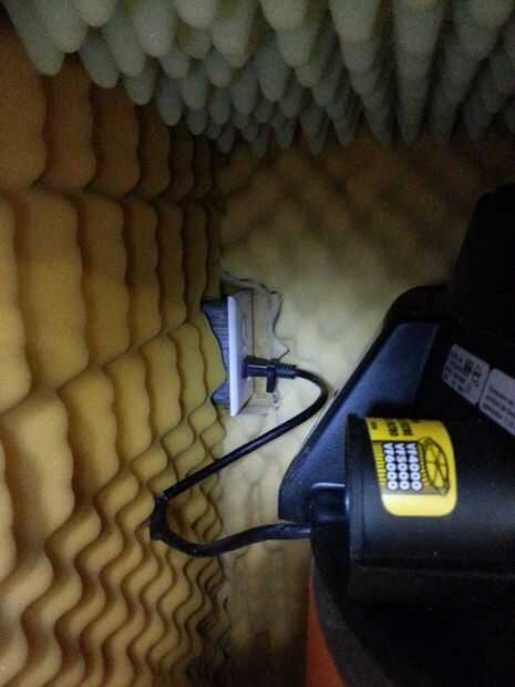 También acortar el cable eléctrico a la aspiradora de taller y agregó una toma de corriente dentro de la caja.