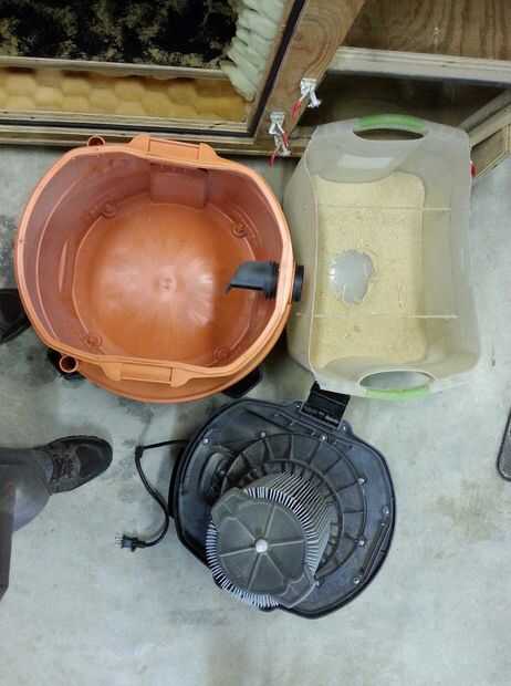 He incluido una foto que muestra una comparación del polvo que es capturado en el envase de plástico bajo el diputado polvo y lo que realmente a la aspiradora de taller.