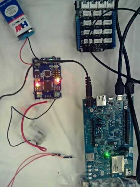 • Coche robot controlada por medio de microcontrolador Intel Edison con el escudo del motor (se muestra en la figura) servo conectado de coche robótica, codificador rotatorio, sensor de vibraciones piezoeléctrico se utiliza aquí.