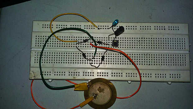 • Basado en la intensidad de las vibraciones detectado usando el sensor piezoeléctrico conectado a Edison de Intel, la energía eléctrica piezoeléctrica es aprovechada según el circuito que adjunto en la foto.