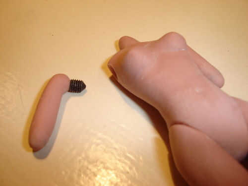 La figura es casi totalmente posible y puede incluso estar parado vertical sin apoyo. Pero como las partes desarmarse fácilmente y arcilla polimérica no es como si como plástico, no es muy adecuado para realmente jugar con él como hacen los niños pequeños (pero entonces, ¿qué figuras de acción hechas a mano son?). También, la tinta del marcador lavable de fieltro también tiende a venir de en los dedos. Pero se puede utilizar para configurar un innumerable número de escenas estáticas. Movimiento de la parada podría ser posible, aunque el movimiento articular muy "perder" requeriría un enfoque muy cuidadoso.