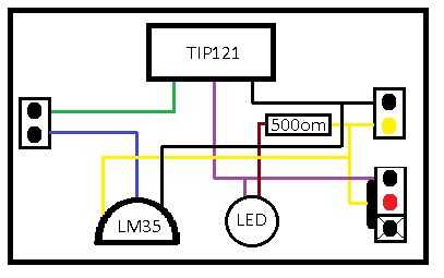 Coloque el compuesto termal al radiador y la 121 punta sobre él con una conexión de la opción del perno. Extender la E, B y C, TIP 121 pines con cables más gruesos y conéctelo al régimen. El LM35 (DZ - para grados centígrados si eres de Europa como yo ;)) puede suministrarse con niveles de variedad de tensiones de 4 a 20V DC. Parece que estaría bien usar aquí 8 voltios ((20-4) / 2), aunque no es estándar y me fui para el 12, de la fuente externa (la batería del coche).