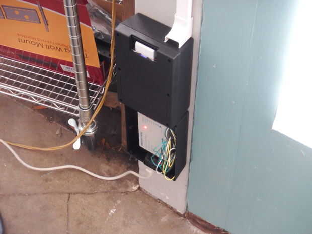 Encontrar un lugar para montar el lector. Encontrar una manera de ejecutar los cables dentro del mecanismo de control (no que sea accesible al exterior - si usted tiene acceso a la fuente de alimentación el sistema trivial es subvertido). Se utilizaron los cables de conexión, conducto plástico y tubería del encogimiento. Para el mecanismo de control, se utilizaron dos cajas de proyecto pequeños, uno para la alimentación y uno para el mecanismo, montado a la jamba de la puerta con cinta de doble cara. Usted puede hacer esta forma que desee, lo que hicimos es exclusiva de nuestra instalación y sólo es una sugerencia.