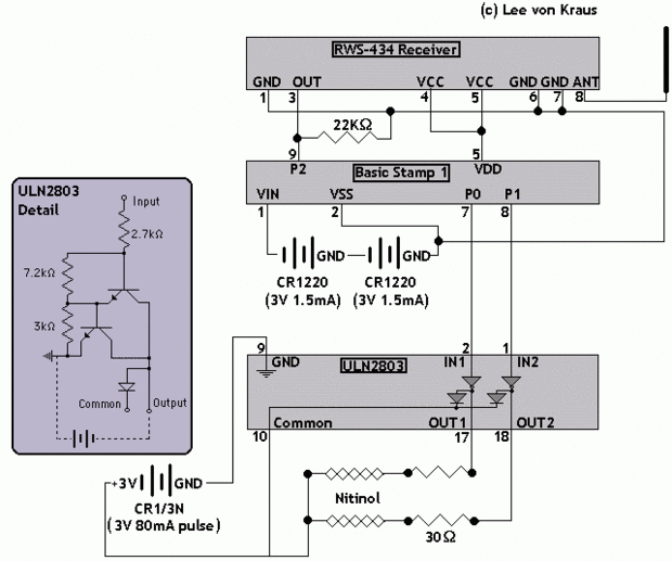 Usted puede hacer la estampilla básica emitir comandos preprogramados (ver diagrama sin receptor RF)