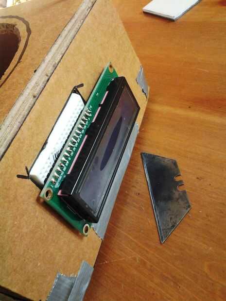 Comencé cortando un agujero para la placa de la pantalla LCD. Si se corta un agujero del tamaño exacto, la pantalla y la placa se asegurará firmemente y sentarse allí sin necesidad de otras herramientas.