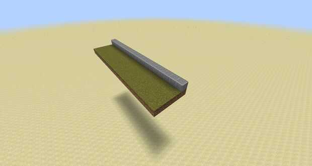La primera parte es poner la pared exterior; lo importante a recordar con esto es la longitud de un número impar para los mejores resultados. En el caso de la anterior, es ancho 19 de largo y 5. La longitud no importa, pero el ancho debe ser siempre 5 cuadras para los mejores resultados. Asegúrese de que el área alrededor fueron vas a construir es plana para los mejores resultados.