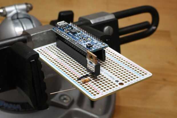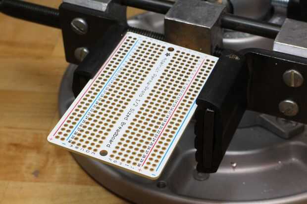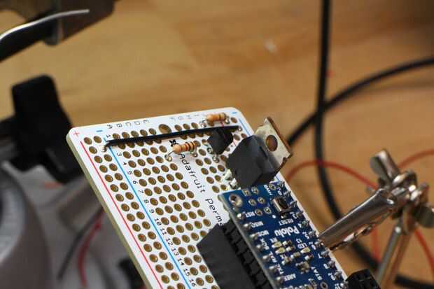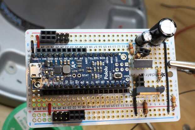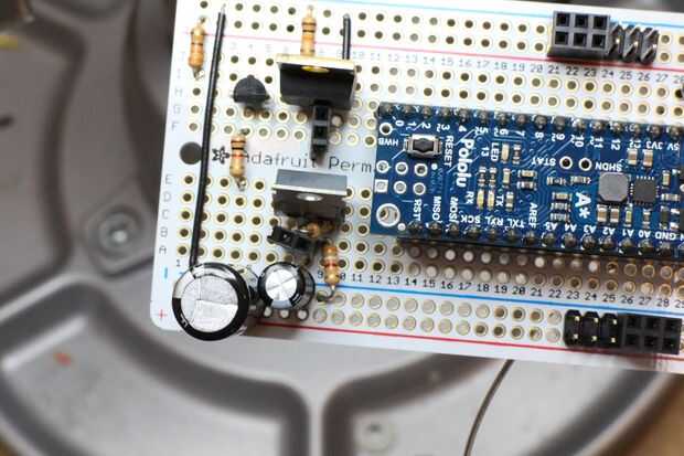 Yo he conectado el esquema para la referencia arriba. La mayoría de los circuitos se vive en el protobard mini, con enchufes hembra encabezado para montaje rápido. Usé el riel de alimentación superior para el voltaje de la batería y el riel inferior para la salida de 5V del Micro A *. También he añadido un 1000uF en el 7.4v batería carril y un condensador de 100uF a la salida de 6V de los LM317.