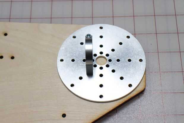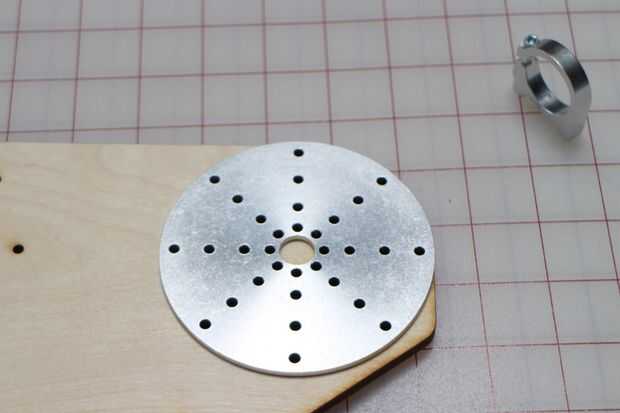 Coloque el redondo base sobre los agujeros y fijar con tuercas de 6-32 doce