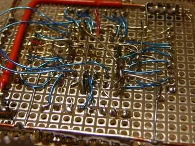 Una vez que se realizan las conexiones de la tapa, conectar el bus de corriente y tierra. Todos los pasadores rojos en los diagramas son Vcc y deben estar conectados. Los pasadores negros son tierra y deben estar conectados también. Otra vez, encaminamiento en el aire es un buen enfoque. Mira las fotos de ideas.