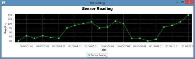 5. durante la prueba se construyó un gráfico simultáneo de lecturas del sensor capturadas. Los gráficos pueden ser construidos usando API jfreechart.